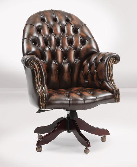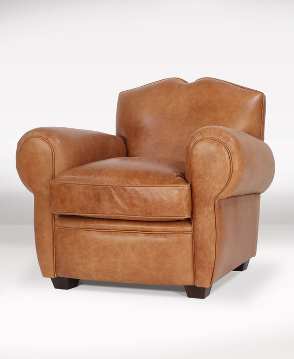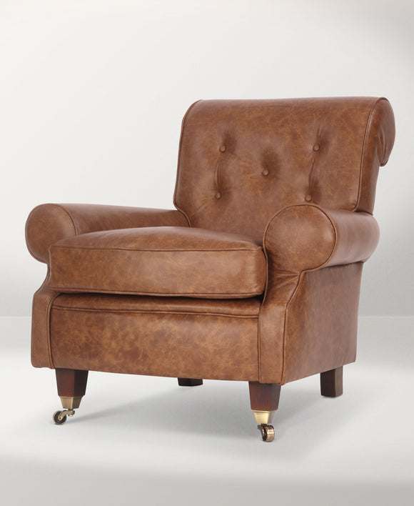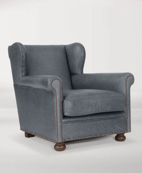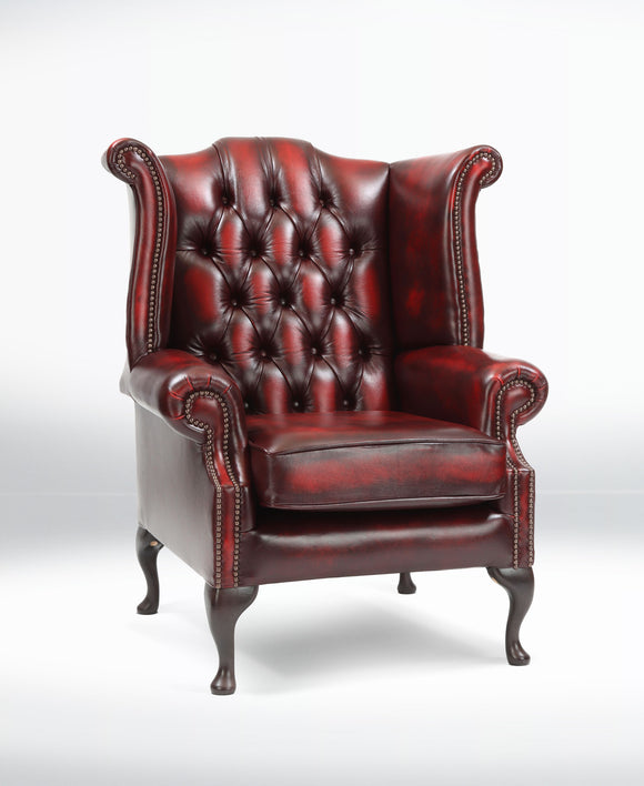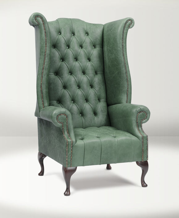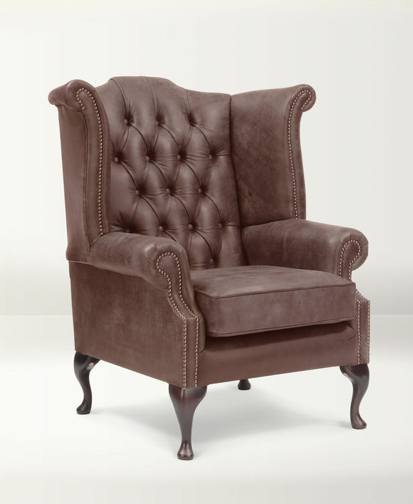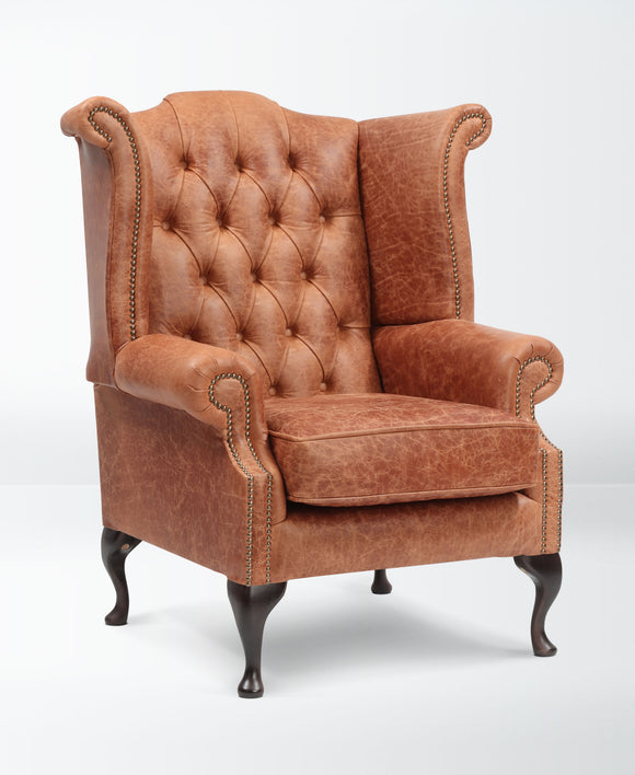 Tall Queen Anne Wingback Chair in Vintage Leather